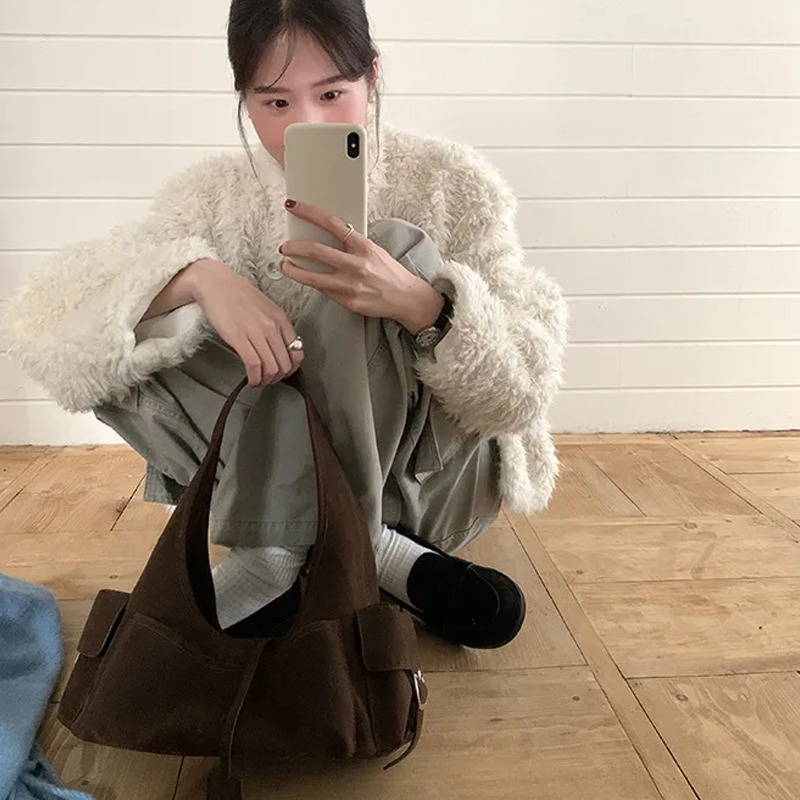 Retro-Style Suede Lightweight Shoulder Bag