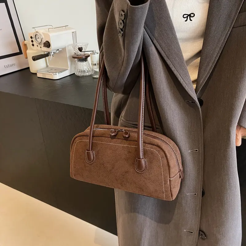 Highly Watched Chemicals: None Material: Imitation Suede Bag Type: Shoulder Bag Lining: Nylon Color:Coffee Size:30x16cm..
