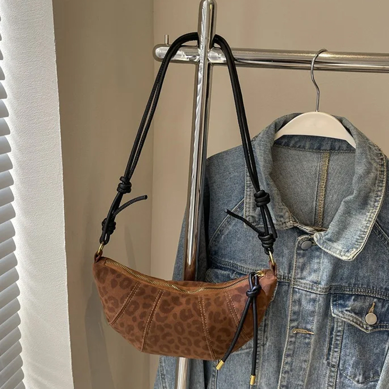 Retro Half-Moon Shaped Fashionable Suede Underarm Bag